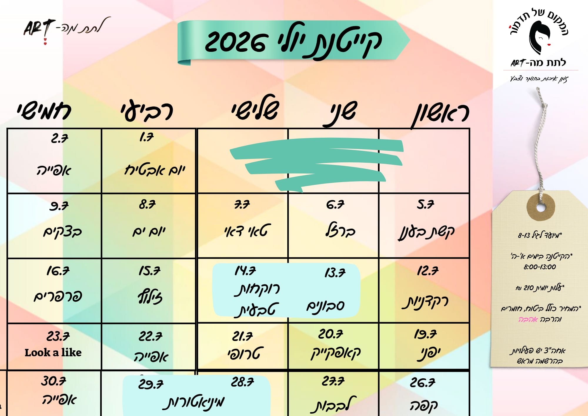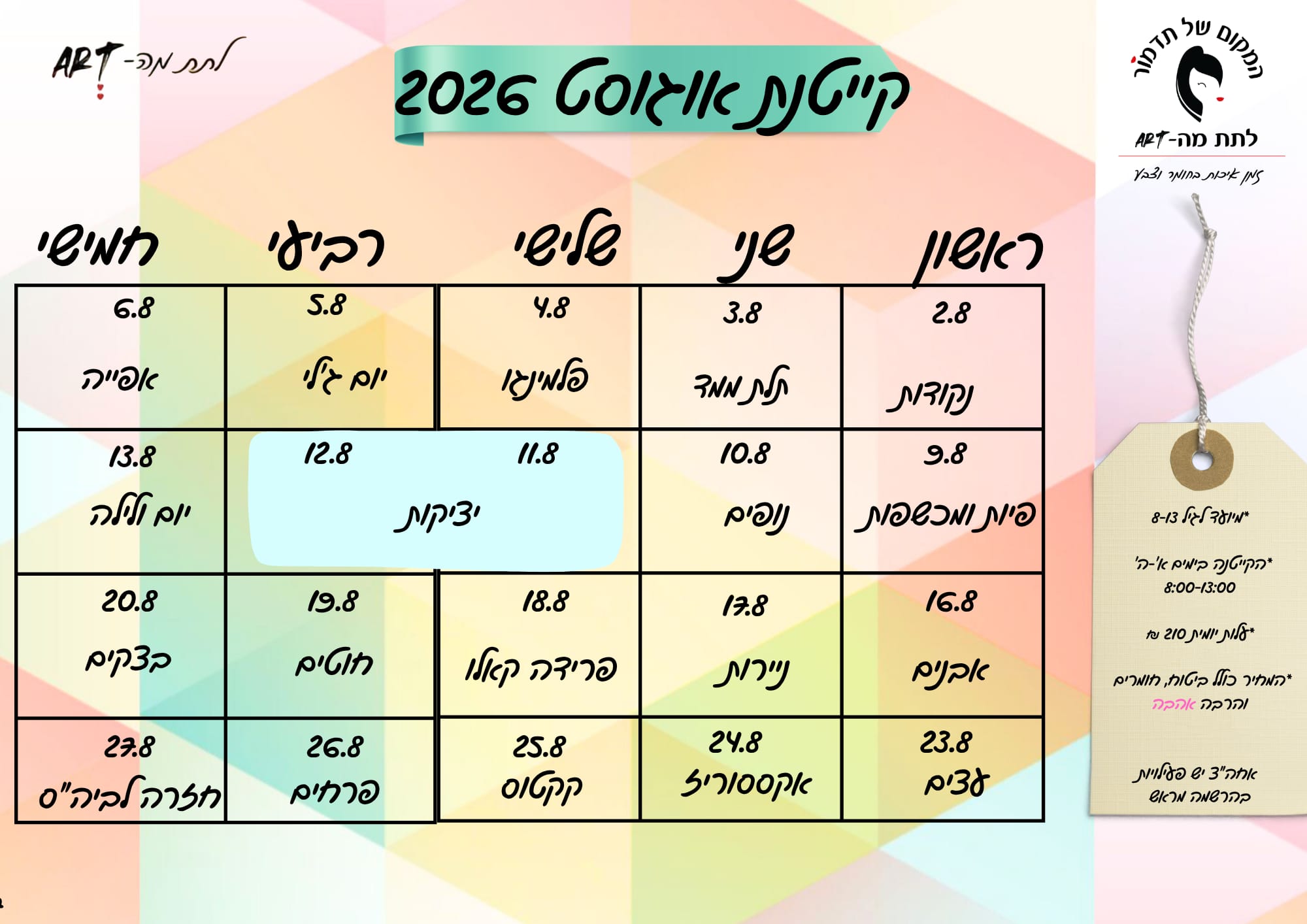 תאריכים: 1/7-23/8/26, א'-ה'.