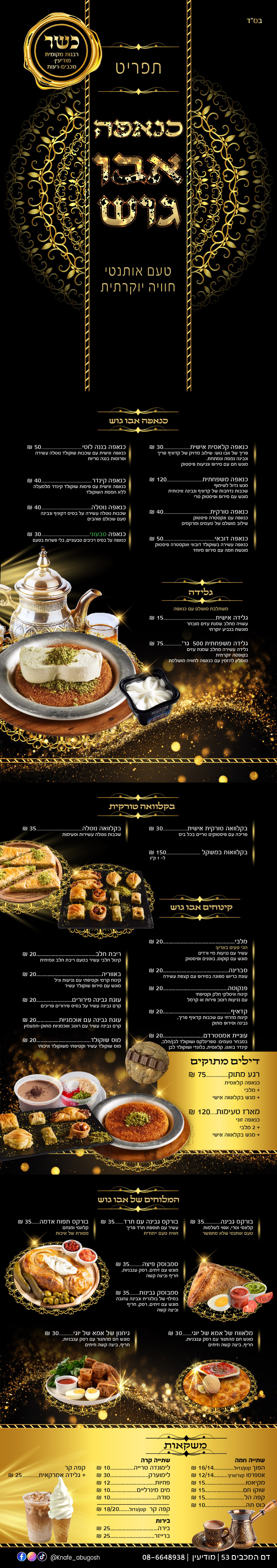 - מתוקים לאירועים: מלבד התפריט הרגיל, המקום מציעים גם שירות רחב של הזמנות לאירועים, כמו בר מצווה, חינות, שבת חתן, ימי הולדת, אירועי חברה ועוד. הכנאפה מגיעה טרייה ובמבחר גדלים, ומוסיפה לכל אירוע טאץ’ מתוק ומרשים.