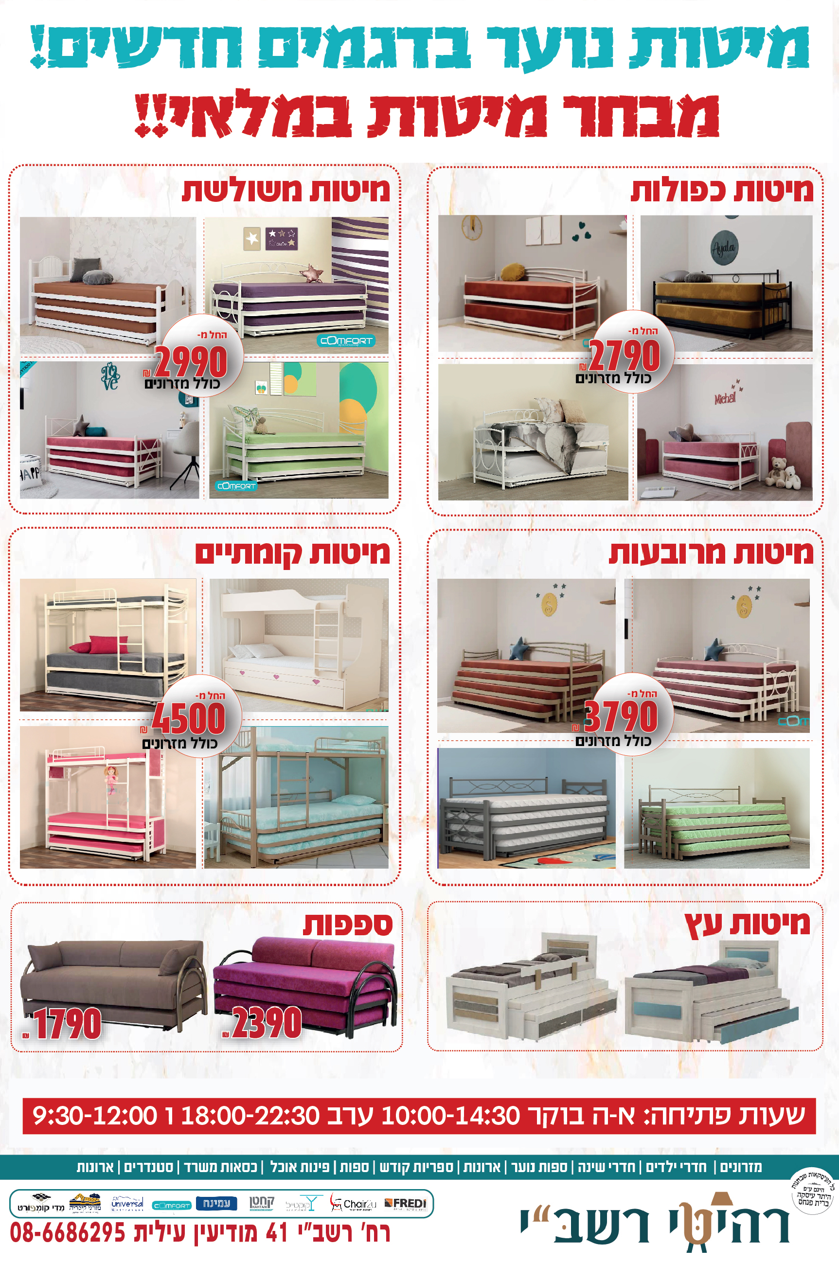 - מיטות נוער וילדים - מיטות כפולות, קומותיים, נפתחות וספפות במגוון עיצובים! החל מ-1,790 ₪ בלבד! לפרטים נוספים לחצו כאן